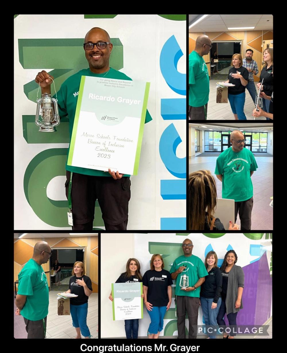 It is our pleasure to recognize and congratulate Ricardo Grayer, 8th grade U.S. History teacher at Mason Middle School, on being named the 2023 recipient of Mason Schools Foundation’s Beacon of Inclusive Excellence award.
